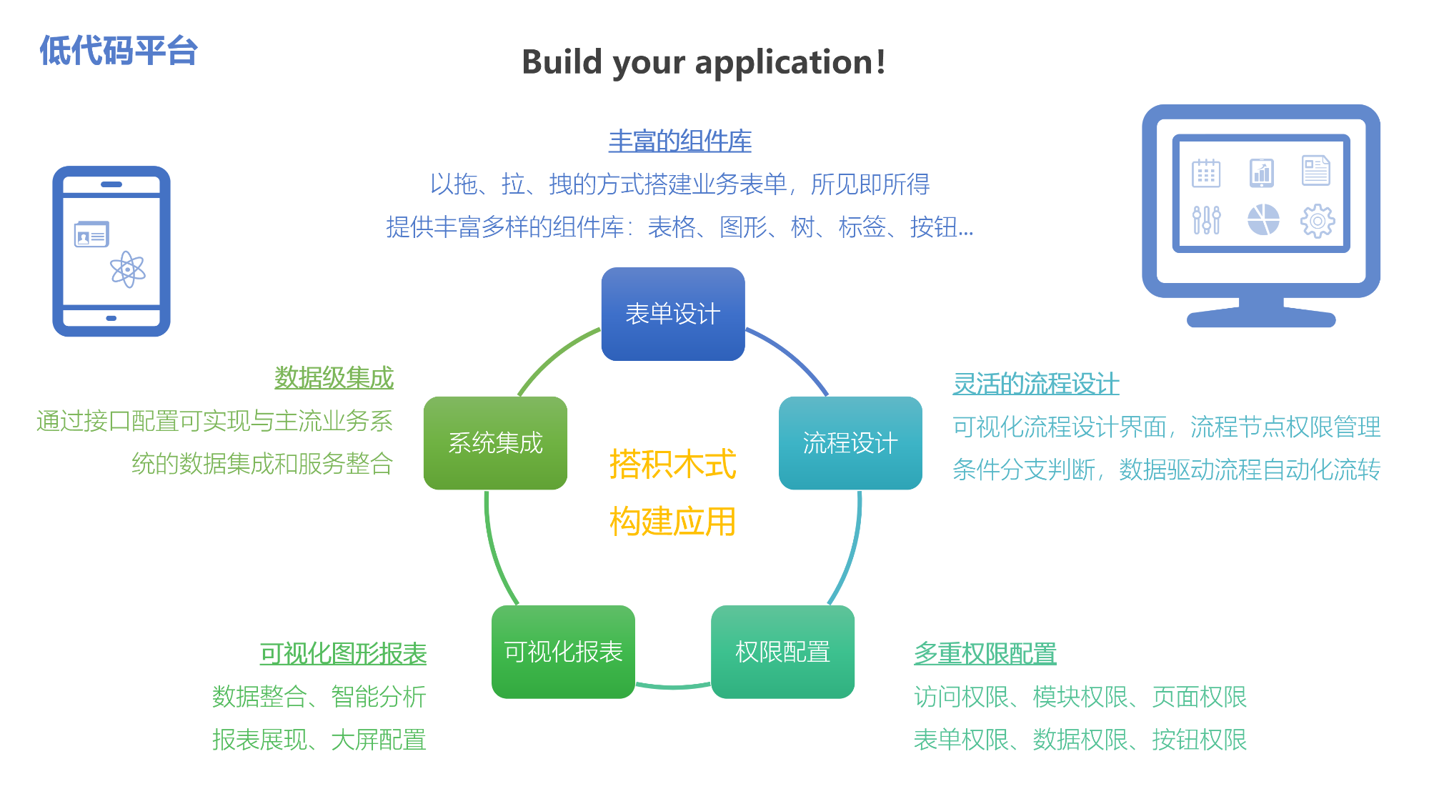 低代码平台,快速搭建企业所需应用,满足新业务需要 |